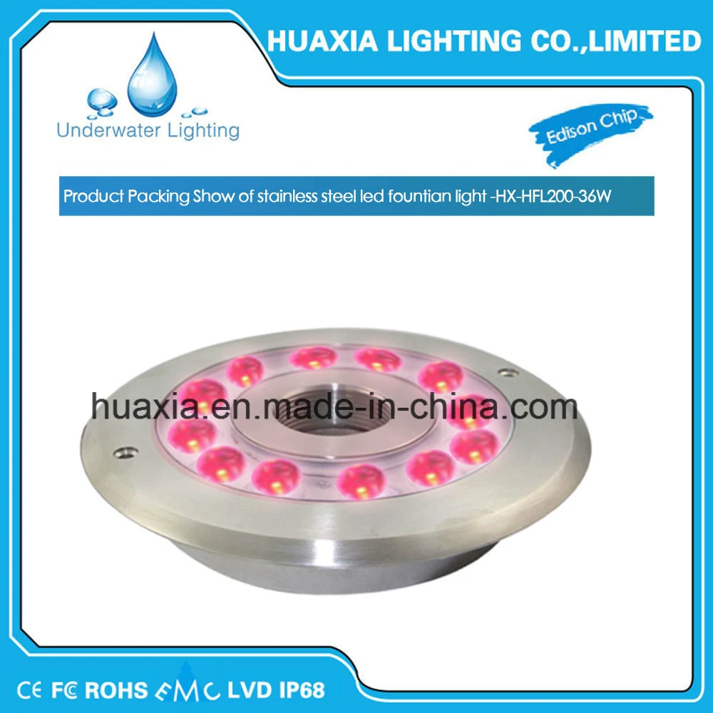 36W LED Fountain  Underwater LightTechnical Parameters of 316SS 27W DC12V White Founain Led Lightitem No:Lamp sourceLED Qty    ColorWattageVoltageMaterialHX-HFL200--27WHigh power   9     RBGSingle