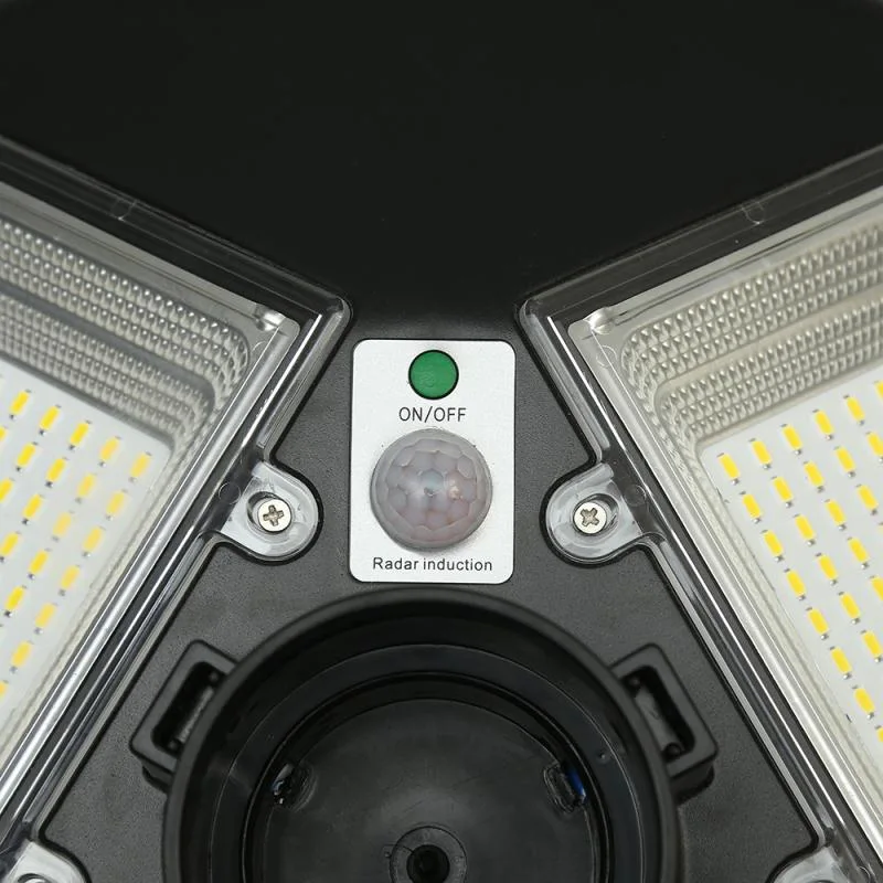 Main Features :1. Powerful LiFePO4 battery,environmental.2. Smart remote control function to satisfy different customer use 3. Constant brightness/Dim lighting + Motion sensor/Timer lighting mode 4. 240pcs Led chip, SMD5730, 120lumen/W ,360°wide lighting angle. 5. Solar charging , no electr