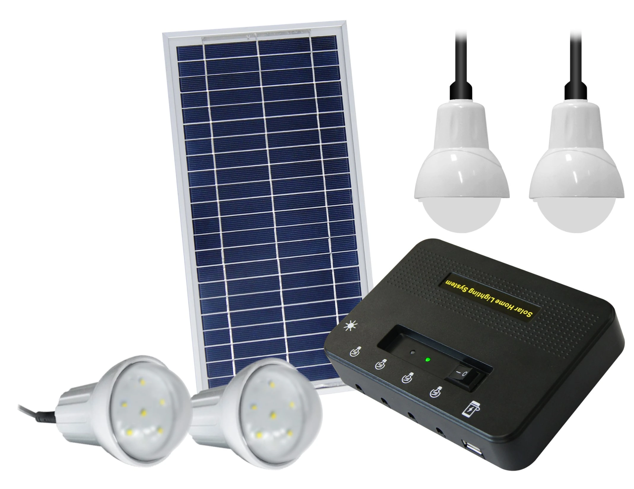 Solar Home Lighting System with 4*2W Bulbs to Light 4 Rooms