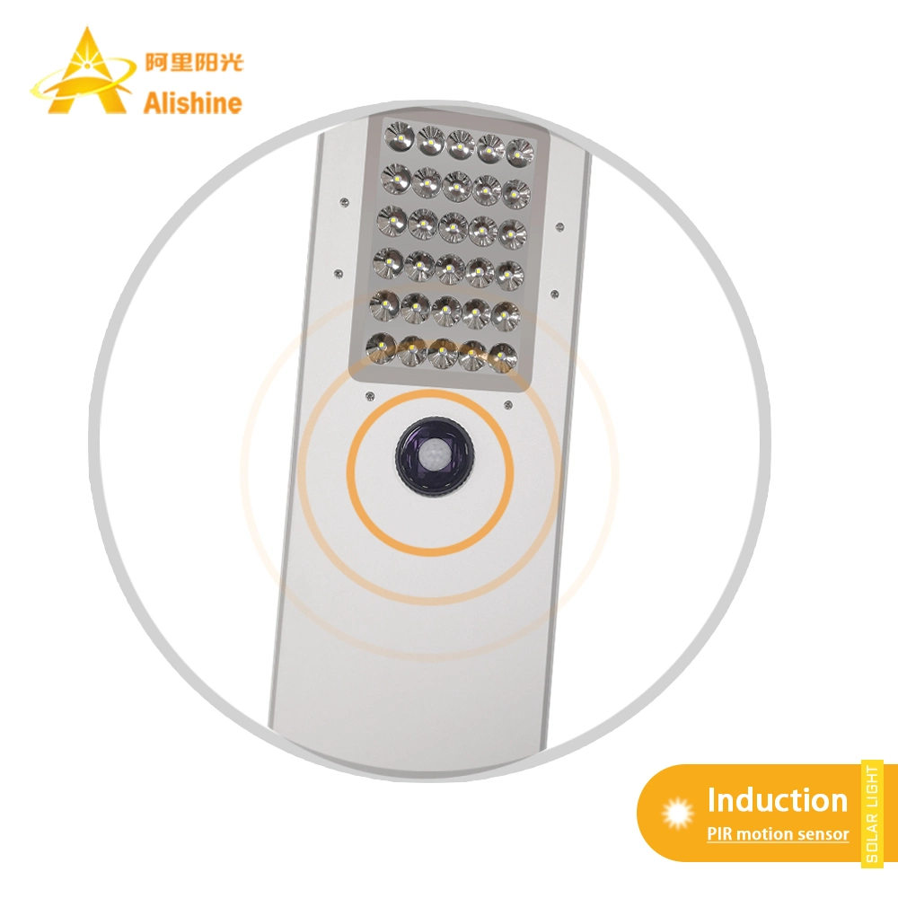 Remote Control LED Lighting Lamp Main Road Lighting Smart Outdoor Solar Street LampProduct parameters:Remote Control LED Lighting Lamp Main Road Lighting Smart Outdoor Solar Street LampModel:AL-K30CIR>70RaSolar panel Max power:18V35W (Monocrystalline silicon)Sensor distance/Solar panel Life time:25 yearsLamps material of main